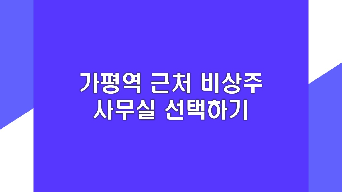 비상주 사무실을 선택할 때 몇 가지 사항을 고려해야 해. 첫째, 위치가 중요해. 가평역이랑 가깝고 교통이 편리한 곳을 선택하면 좋지. 둘째, 시설과 서비스도 확인해야 해. 커뮤니티 공간, 회의실, 프린터 같은 기본적인 시설이 잘 갖춰져 있는지 살펴보자. 셋째, 가격대도 체크해야 해. 적당한 가격에 원하는 서비스를 받을 수 있는 곳이 좋지. 이 모든 사항을 종합적으로 고려해봐야 해.