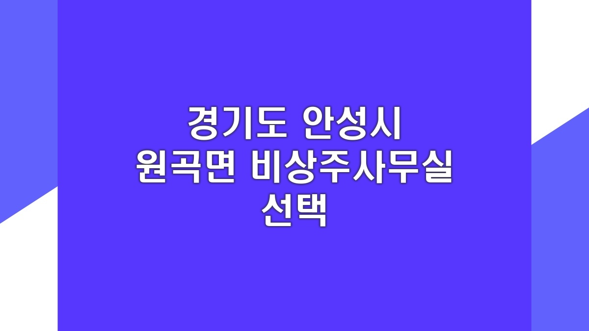 안성시 원곡면에서 비상주사무실을 찾고 있다면 여러 가지를 고려해야 해. 공유오피스가 대세인 요즘, 선택 기준이 중요해지지. 안전하고 쾌적한 근무 환경은 기본이고, 교통편이 좋은지, 회의실 등 공유 공간이 잘 갖춰져 있는지도 살펴봐야 해. 가격대와 계약 조건도 비교해 보는 게 좋고, 후기가 있는지 체크하는 것도 유용해. 여기에 가까운 학원이나 카페 등의 편의 시설 여부도 고려해보면 좋겠지.