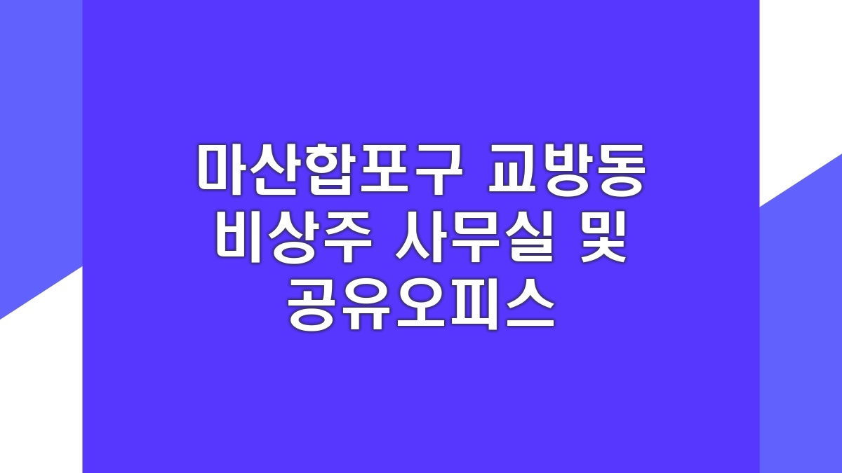 창원시 마산합포구 교방동에서 비상주 사무실이나 공유오피스를 찾는 사람들이 많다. 그러니까 위치나 가격, 시설을 생각하면서 선택할 수 있는 방법에 대해 알아볼까 함. 최근 많은 기업들이 업무의 일환으로서 공유오피스를 선호하는 이유는 비용 절감과 유연한 근무 환경 때문이야. 그래서 다양한 옵션이 있는데, 어떤 기준으로 선택해야 하는지 정리해봤어.