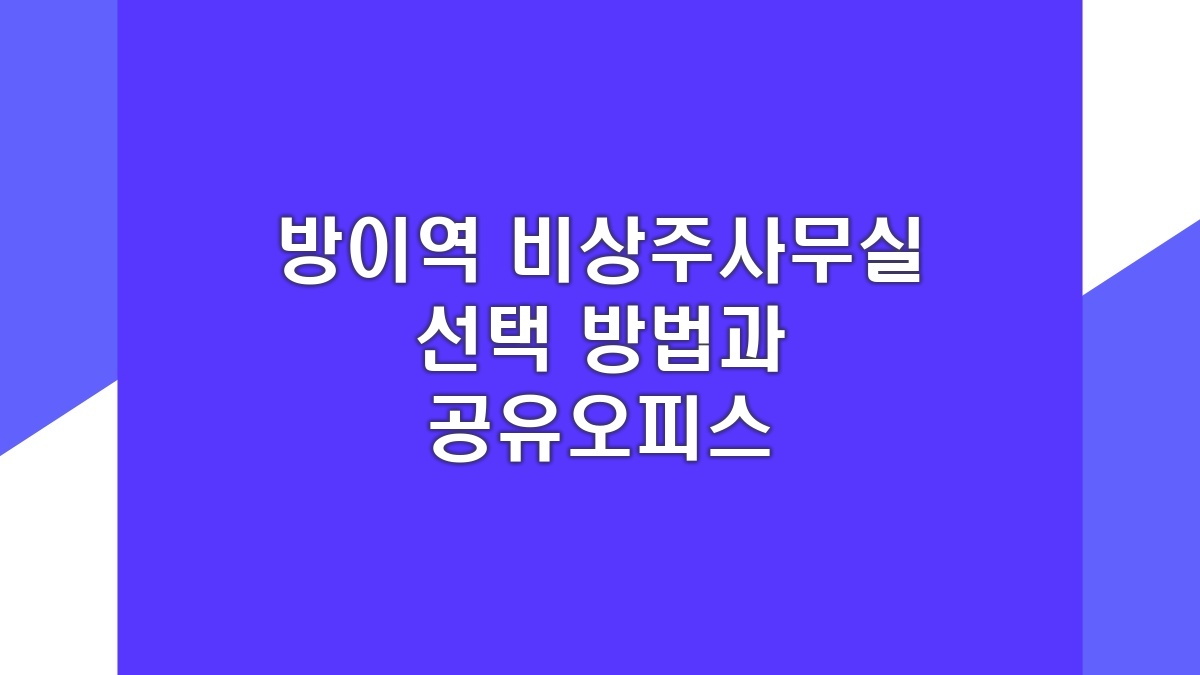 방이역 주변에 있는 비상주사무실과 공유오피스는 참 편리한 선택지야. 특히 창업 초기나 이동이 잦은 사람들에게 유용해. 다양한 시설과 혜택이 있어서 원하는 조건에 맞춰 선택하기 바란다. 무엇보다 가격이나 위치, 서비스 등을 비교해 봐야 해. 비상주사무실은 유연하게 쓸 수 있어서 좋고, 공유오피스는 네트워킹도 할 수 있는 장점이 있다. 이런 점들 잘 고려해서 결정하면 좋을 듯!