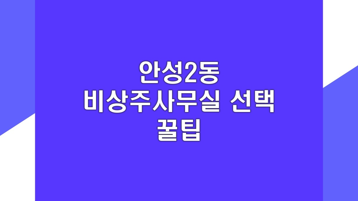 비상주사무실은 작은 사업자나 창업자에게 많은 도움을 줄 수 있는 공간이야. 안성2동에는 다양한 선택지가 있으므로, 자신의 필요에 맞추어 신중하게 선택하는 게 중요해. 여러 비교 요소를 감안하고 각 공간의 장단점을 잘 고려하길 바라. 아마도 좋은 공간을 찾을 수 있을 거야. 최적의 사무 공간을 통한 성공적인 비즈니스를 응원할게!
