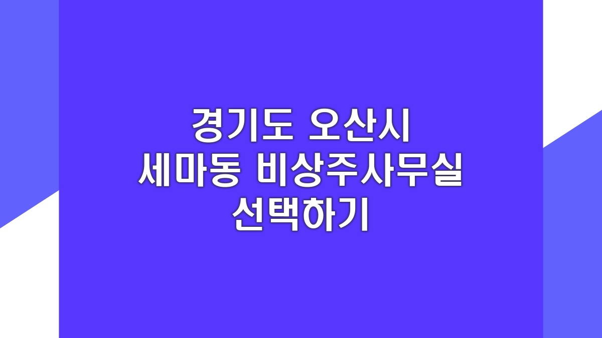 경기도 오산시 세마동에 있는 비상주사무실과 공유오피스를 선택할 때 고려해야 할 게 많음. 다양한 옵션이 있지만, 자신의 업무 스타일과 예산에 맞추는 게 중요함. 비상주사무실은 사실상 사무 공간을 필요로 하지 않는 사람에게 알맞고, 공유오피스는 좀 더 협업 환경을 통해 네트워킹 할 수 있는 장점이 있음. 세마동의 여러 장소를 살펴보면서 교통편과 주변 시설도 체크해볼 필요가 있겠음. 각 공간의 리뷰를 찾아보는 것도 좋은 결정에 도움이 됨. 자신의 필요를 먼저 파악해야 최적의 선택이 가능함.