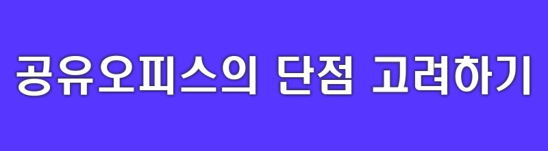 공유오피스를 이용하면서 잠재적인 단점도 고려해야 할 필요가 있다. 첫째, 개별적인 사무환경의 차별성이 부족할 수 있다. 둘째, 사용 시간에 대한 제약이 있을 수 있는데 시간대에 따라 이용이 힘들 수 있다. 마지막으로, 개인정보나 기업 비밀 관련해서 사생활 보호가 취약할 수 있다. 이런 점들을 잘 알고 미리 준비하는 게 좋다. 단점을 인식하고 해소하는 방법을 생각하자.
