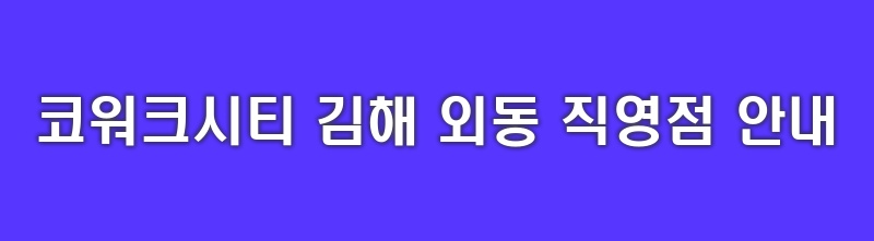 - 신주소 : 경상남도 김해시 금관대로 1205 비상주사무실 코워크시티 김해 외동 직영점