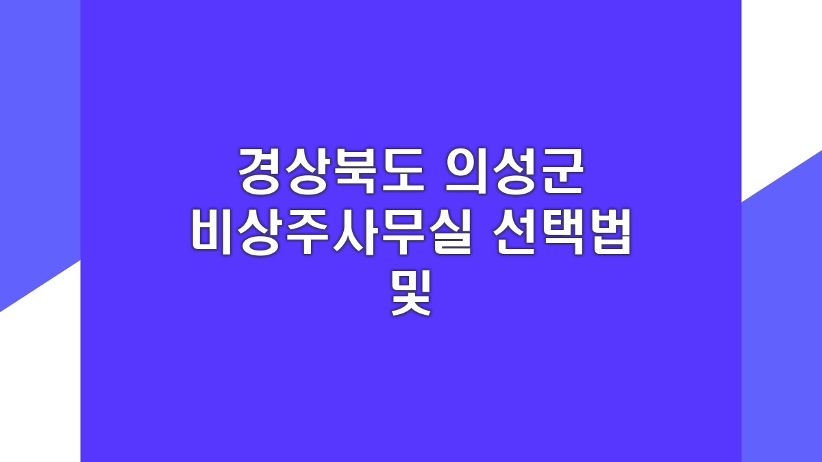 결론적으로, 경상북도 의성군의 비상주사무실은 현대 비즈니스 환경에서 유연하고 경제적인 선택지야. 사용자가 필요로 하는 조건에 따라 잘 선택하면 큰 도움이 될 거야. 여러 옵션을 비교하고 장단점을 잘 파악해서 자신에게 꼭 맞는 공간을 찾는 것이 핵심이지. 제일 중요한 건 정확한 정보 수집과 신중한 결정이니까 잘 생각해봐야 해. 앞으로의 사업 운영에 많은 도움이 되길 바랄게.