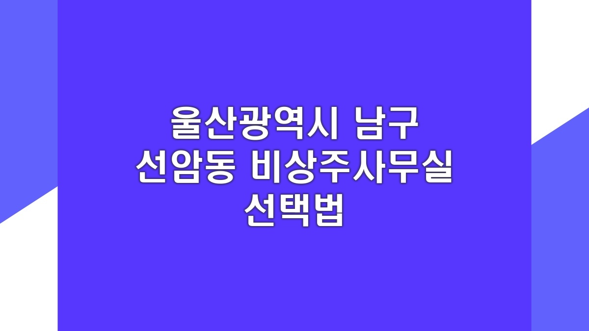 울산 남구 선암동에서 비상주사무실을 찾고 있다면 여러 가지 사항을 고려해야 해. 지역 특성과 가격, 사무공간의 환경까지 다양한 요소가 영향을 미치니까. 이곳의 비상주사무실은 다양한 기업에 적합하고, 특히 초보 창업자나 프리랜서들에게 인기가 많아. 여러 옵션을 비교하고 올바른 선택을 하는 게 중요해. 이 글에서는 비상주사무실 선택 시 유의해야 할 점과 공유오피스의 장점을 정리해 보려 해. 참고하면 좋을 듯.