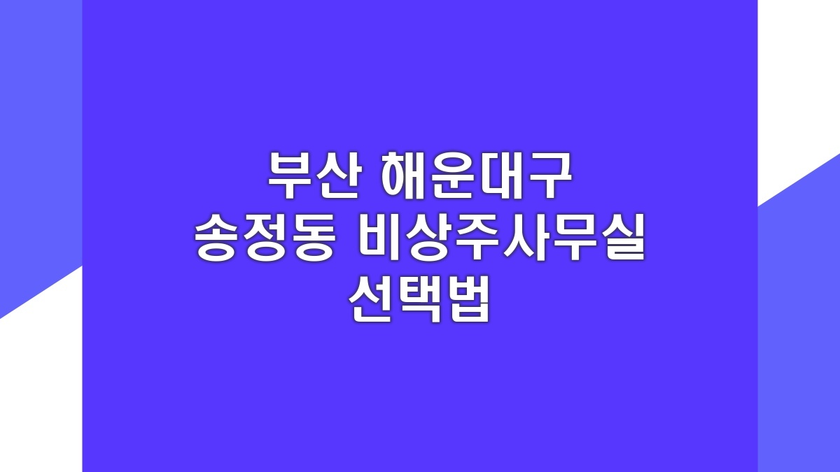 부산 해운대구 송정동 비상주 사무실은 여러 장점을 갖춘 훌륭한 선택이야. 공유오피스와의 차별점도 분명하고, 위와 같은 요소들을 잘 고려하면 나에게 맞는 공간을 발견할 수 있을 거야. 유연성과 편의성, 경제성을 모두 갖춘 선택이니까 꼭 신중하게 고민해봐. 최고로 효율적인 사무 공간을 확보하는 게 목표니까 ㅎㅎ.