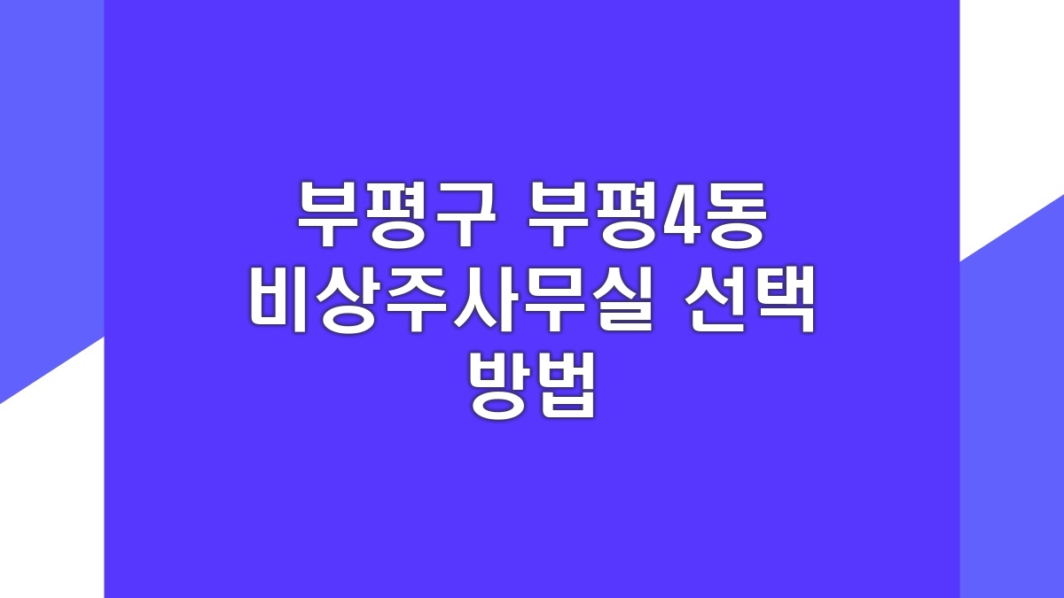 부평구 부평4동의 비상주사무실과 공유오피스는 각각의 장점이 있어. 선택할 때는 나의 필요를 잘 따져봐야 해. 교통 편의성, 가격, 조건들을 체크하고, 주변 후기나 추천도 고려해보면 좋을 거야. 이렇게 잘 선택하면 좀 더 효율적인 업무 환경을 만들 수 있을 거라 믿어. 잘 생각하고 선택하길 바래!
