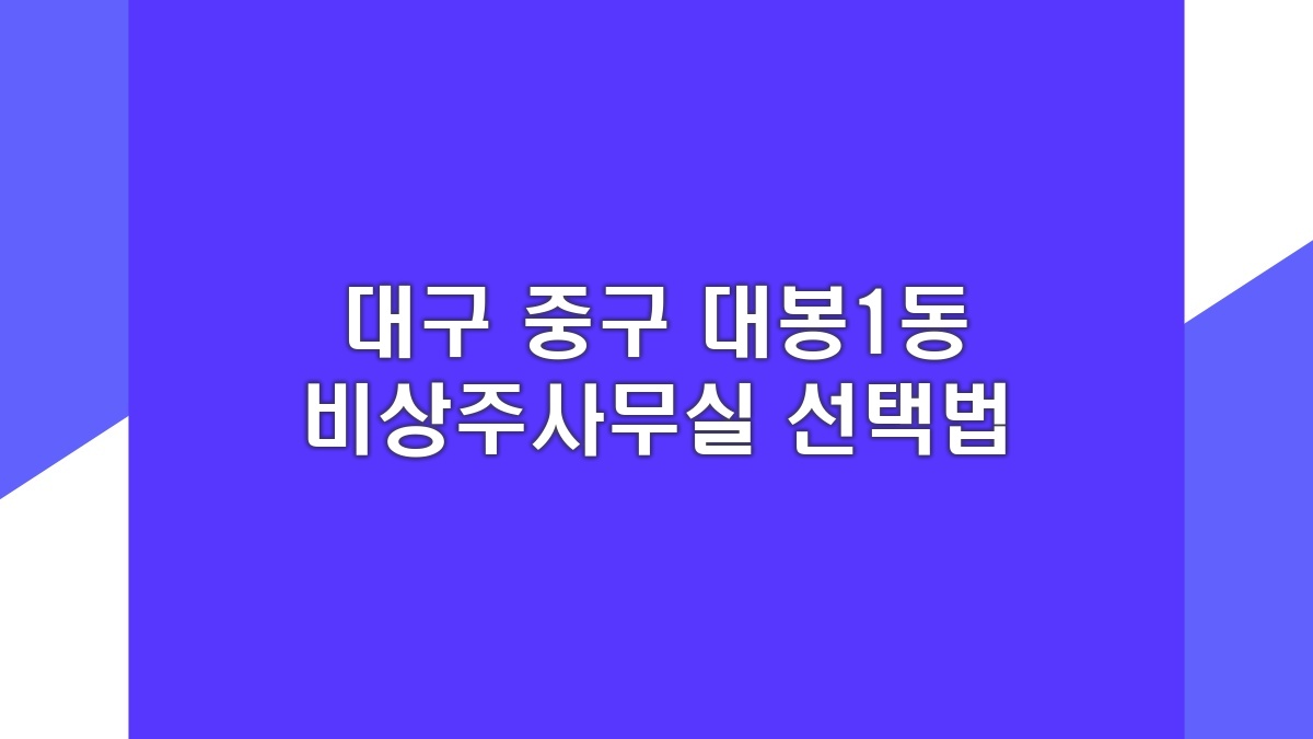 대구광역시 중구 대봉1동에서 비상주사무실을 찾고 있으면 여러 가지 선택지가 많다. 공유오피스를 선택할 때는 가격, 위치, 서비스 등을 종합적으로 고려해야 해. 자주 이용할 일이 있거나 회의 등이 잦다면 좋은 환경을 찾아야 하지. 특히 대봉1동은 교통도 편리한 편이라 접근성이 좋다. 모임을 자주 가진다면 이러한 점도 중요하지. 비상주사무실 선택법에 대해 다양한 정보를 제공할게.