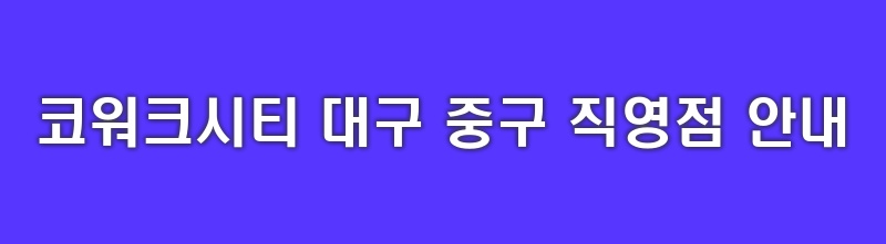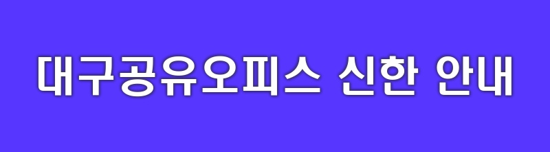 - 신주소 : 대구광역시 중구 국채보상로 558-1 비상주사무실 코워크시티 대구 중구 직영점