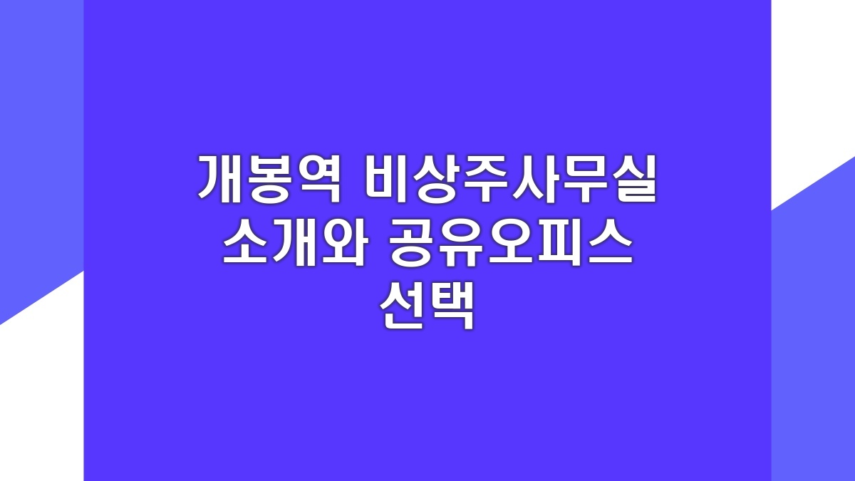 개봉역 비상주사무실에 대해 알려줄게. 이곳은 출퇴근이 편리한 위치에 있어서 많은 사람들이 업무를 보는 곳이야. 비상주사무실의 장점은 유연한 근무 환경이야. 원하는 시간에 오면 되고, 사무실을 따로 임대할 필요가 없으니까. 게다가 운영비용이 절감돼서 비용적인 부분에서도 유리한 장점이 많아. 현대 직장인들에게 꼭 필요한 공간이라고 생각해. 이외에도 공유오피스와 같은 다른 옵션들도 많으니 참고하면 좋겠어.
