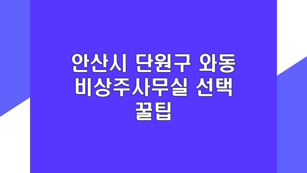 안산 단원구 와동에서 비상주사무실은 어떤 평가를 받고 있나?