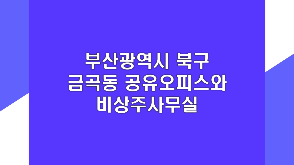부산광역시 북구 금곡동에서 비상주사무실과 공유오피스는 각각의 특성을 살리면 정말 유용해. 필요에 따라 자신에게 맞는 공간을 선택하는 게 정말 중요하고, 다양한 옵션을 충분히 비교해보길 바라. 단순히 가격뿐만 아니라 서비스 품질과 환경 등 여러 요소를 종합적으로 생각하는 게 바람직해.