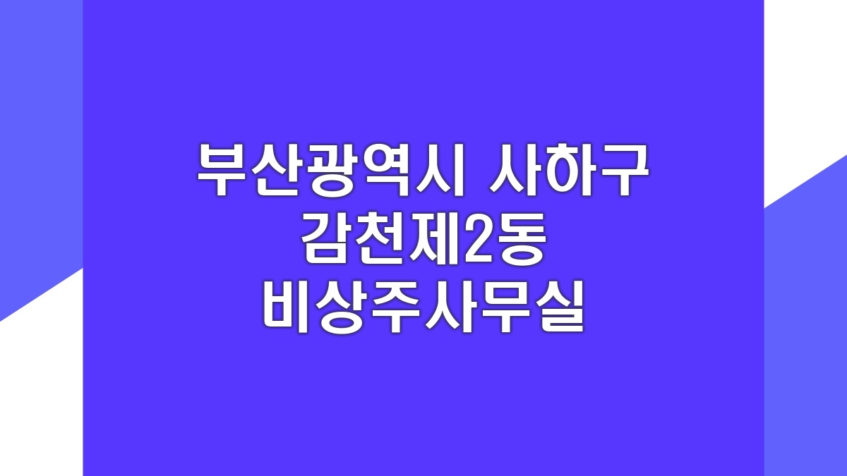 부산 사하구 감천제2동의 비상주 사무실을 선택하는 데 필요한 정보들을 정리해 봤음. 비상주 사무실은 여러 장점이 있지만, 선택할 때는 신중해야 함. 비용, 위치, 서비스, 시설을 고려해 나에게 맞는 최적의 사무실을 찾는 게 중요함. 이 내용들을 참고해서 현명하게 선택하기를 바람.