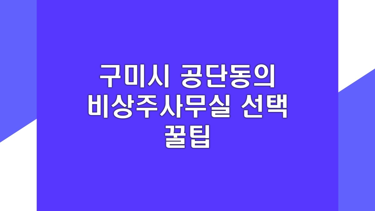 공단동에서 비상주사무실을 선택할 때는 위치와 접근성을 고려해야 함. 교통편이 좋은 곳이 좋고, 주변 인프라도 체크하는 게 중요함. 또 인터넷 속도나 편의 시설이 잘 갖춰져 있는지도 잊지 말고 살펴봐야 함. 마지막으로 가격 대비 성능이나 제공하는 서비스가 적절한지도 체크해야 할 듯. 위치와 서비스가 중요하다는 점 주의해야 함.