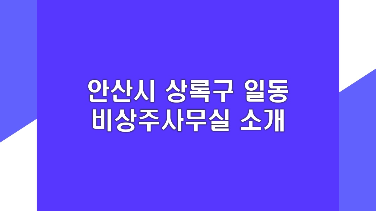 안산시 상록구 일동에 있는 비상주사무실에 대해 이야기해볼게. 요즘 비상주사무실이나 공유오피스 많이들 찾지? 단기 계약으로 책상 하나 빌리는 것도 간편하고, 다양한 서비스도 있어서 업무하기 좋아. 특히 상록구는 교통도 편하고 상업 지역이라 업무 환경이 우수해. 그럼 비상주사무실을 고를 때 고려해야 할 점을 살펴볼까?