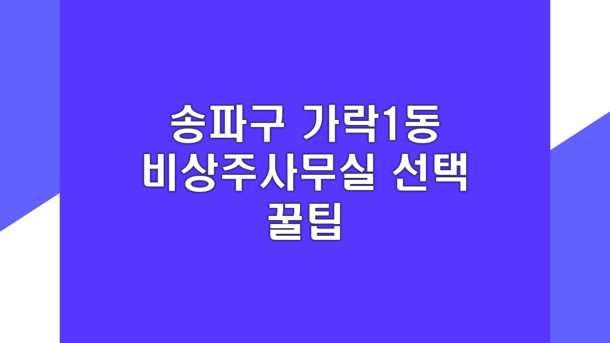 서울 송파구의 가락1동에 있는 비상주 사무실은 여러 창업자들과 프리랜서들에게 새로운 이점을 제공함. 특히 공유오피스로서 유연한 업무 환경을 제공하는 만큼 많은 이들이 선호하곤 해. 그런 만큼, 비상주 사무실을 선택할 때 몇 가지 고려해야 할 요소들이 있어. 입지, 가격, 시설과 같은 부분을 잘 확인하는 게 중요해. 그래야만 후회 없는 선택을 할 수 있을 거야.