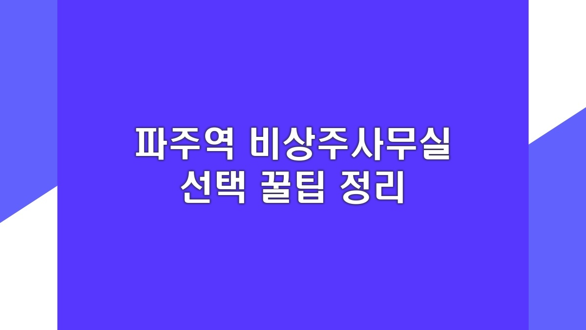 파주역 근처에서 비상주사무실을 찾아본다면 선택이 쉽지 않을 수 있어. 여러 옵션이 있어서 어떤 걸 고를지 고민하게 될 거야. 특히 공유오피스는 전문 직장인이나 프리랜서들에게 인기가 많아. 다양한 가격대와 시설이 있으니 자신에게 맞는 공간을 선정하는 게 중요해. 좀 더 많은 정보를 알아보면 선택하는 데 도움이 될 거야. 그래서 파주역 주변의 좋은 비상주사무실들에 대해 알아보는 게 좋을 듯해.