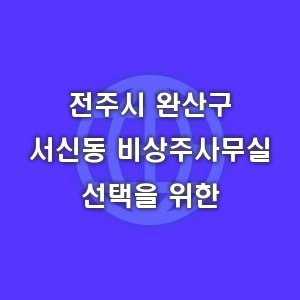 전라북도 전주시 완산구 서신동의 비상주 사무실 선택은 여러 요인에 대한 신중한 고려를 필요로 합니다. 비용적 효율과 유연성을 우선으로 하여 필요에 맞는 공간을 찾는 것이 중요합니다. 최적의 선택을 통해 비즈니스 환경을 개선하고, 더 나은 성과를 도출할 수 있습니다.
