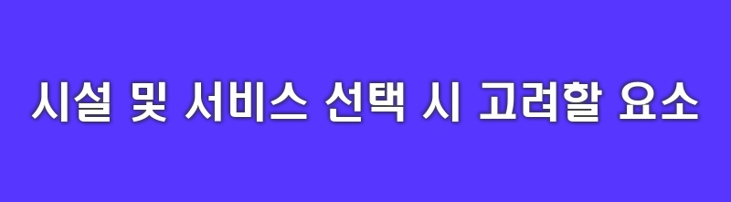 위치와 비용, 시설 및 서비스의 품질이 가장 중요한 기준으로 고려되어야 합니다.